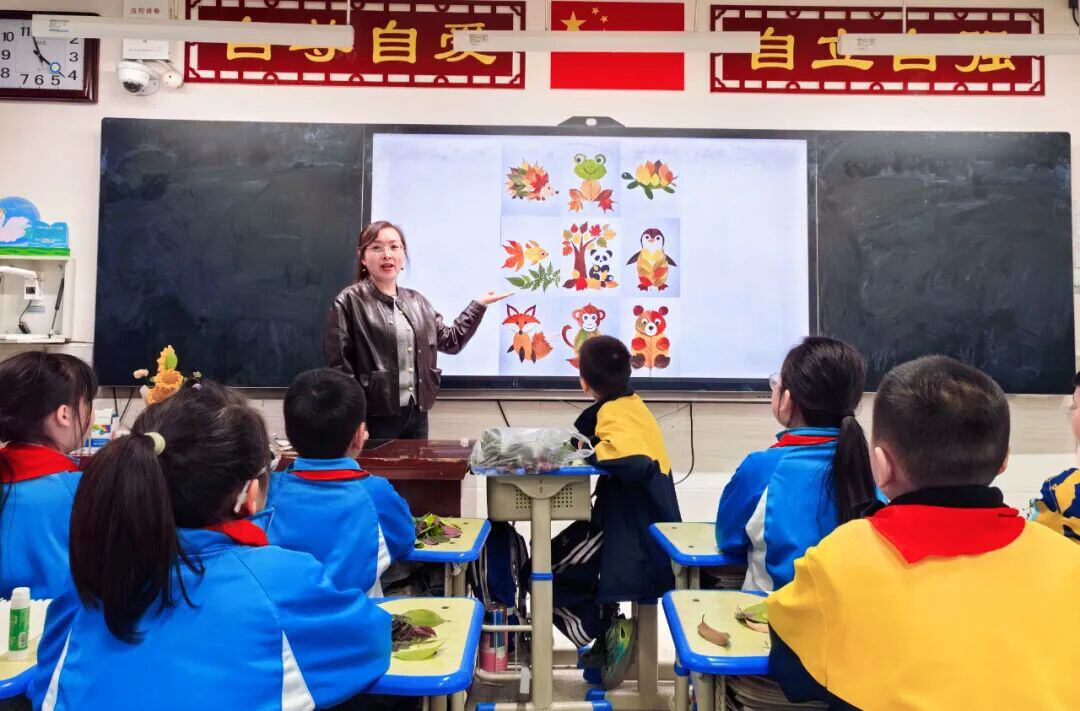 有的捧着梧桐叶,琢磨着拼出灵动的小鱼;有的对着枫叶凝神思考,组合出翩翩起舞的蝴蝶;还有的用细碎叶片拼凑出繁茂的花草、可爱的小动物。无需复杂的构图设计,仅凭一双双巧手与天马行空的创意,一片片普通的树叶便蜕变为栩栩如生的艺术品。每一幅作品都充满了自然的灵气与童真的创意,引得师生们驻足欣赏、啧啧称赞,孩子们也在动手实践中,收获了探索自然、创造美好带来的满满乐趣。