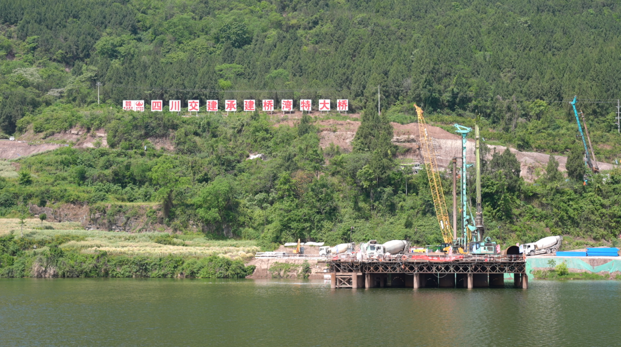 桥湾特大桥全长539.5米、桥宽13.5米,最大跨径达198米,是全线施工难度大、技术要求高的节点工程之一。目前,该工程主栈桥以及所有墩位钢平台搭设已经完成,并通过荷载试验投入使用。现在,正在进行0号墩钢筋笼下放、1号墩桩基水泥混凝土浇筑工作,2号墩则在进行桩基钻孔扩孔施工。