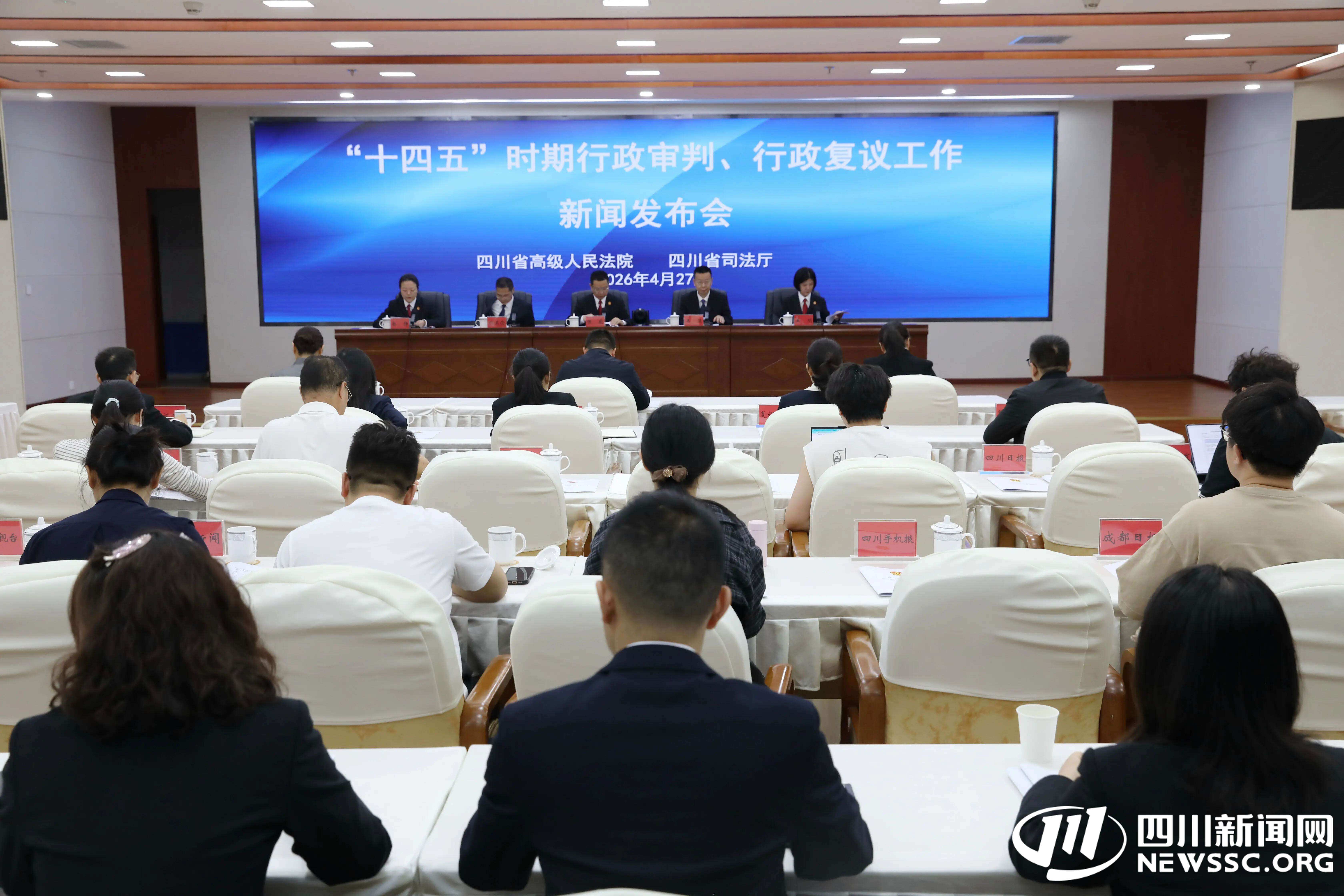 4月27日,四川省高级人民法院联合四川省司法厅举行“十四五”时期行政审判、行政复议工作新闻发布会。
