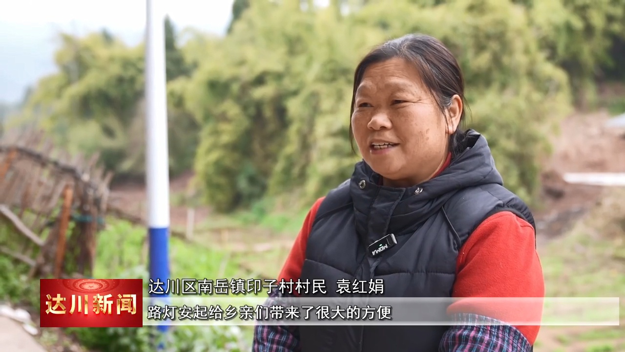 达川区南岳镇印子村村民袁红娟 :我们现在的路灯都安到家门口来了,路灯安起给乡亲们带来了很大的方便。出来乘凉、散步,都很方便。要感谢的就是袁名万为家乡人民做好事,袁名万是好样的。