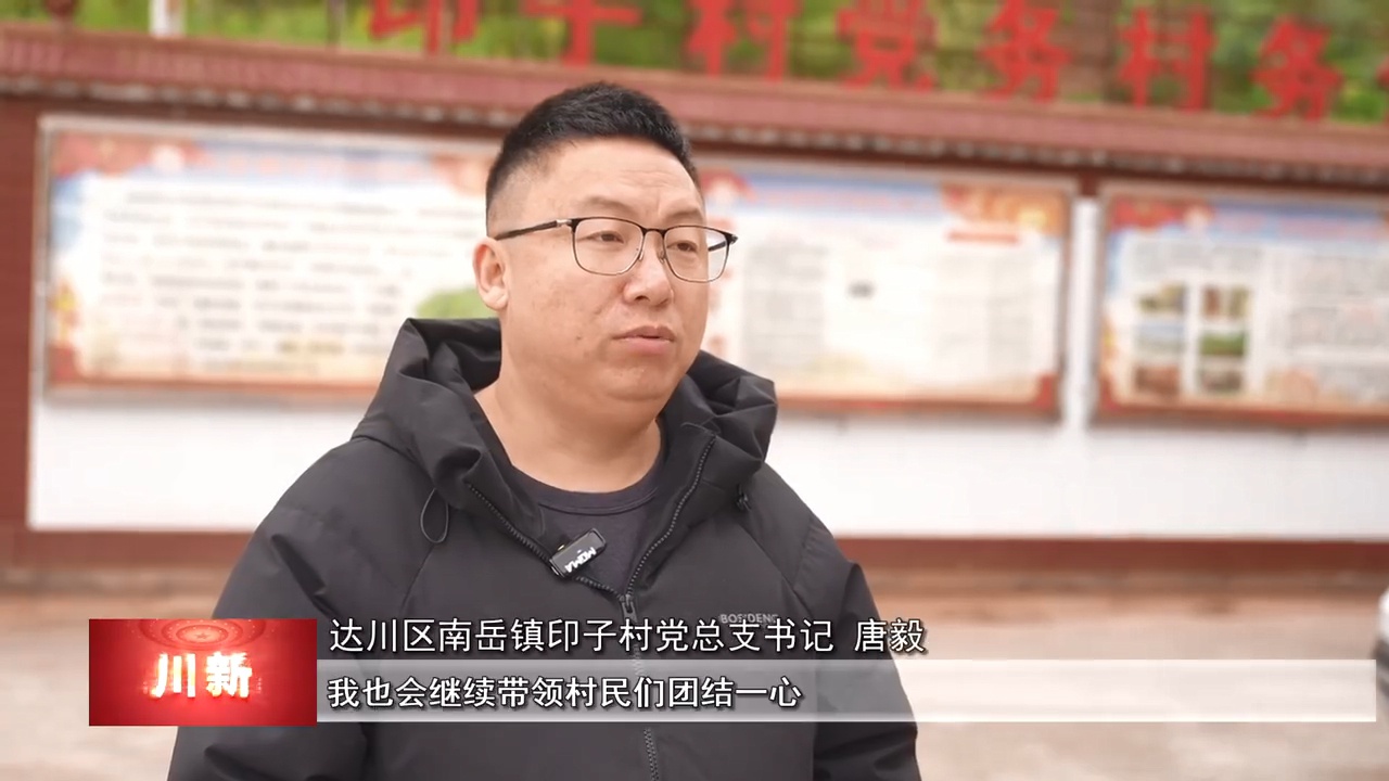 达川区南岳镇印子村党总支书记 唐毅:作为村干部,我也会继续带领村民们团结一心,抓住乡村振兴的机遇,努力改善村里的基础设施,发展特色产业,让乡亲们的日子越过越红火。