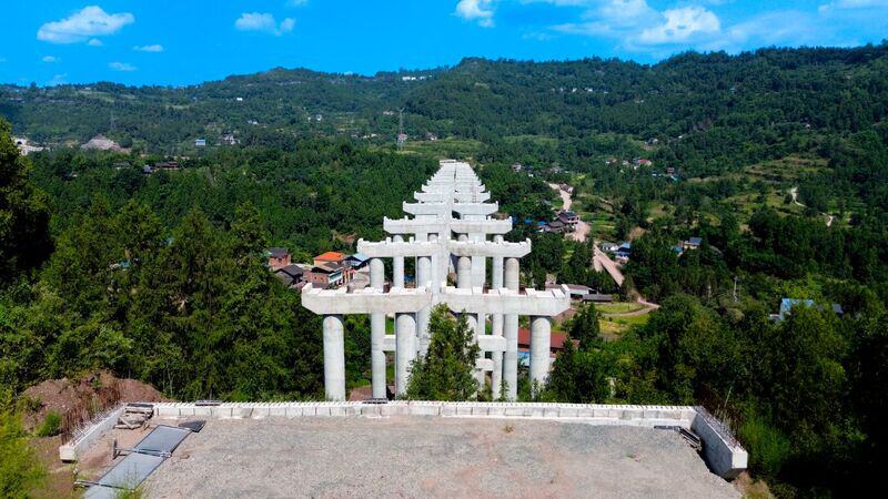 磴子河大桥是达石快速通道横跨磴子河的桥梁,长658米,单柱最高67.5米,是全线单柱最高的桥梁。目前,桥墩、盖梁、桥台均已完成,即将进行桥梁架设。黄家湾隧道是达石快速通道全线唯一的隧道,但是该隧道东西两端均由桥梁与路基进行连接。其中,东端为黄家湾大桥,西端为转马村大桥。目前黄家湾大桥桥墩、盖梁、桥台均已完成,转马村大桥正在进行最后一个桥台施工。而紧邻转马村大桥的新房子大桥,目前正在加紧进行桥梁架设。