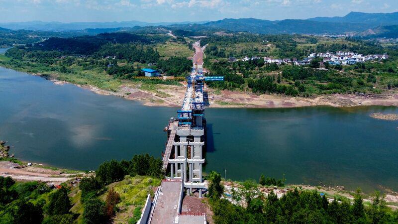 8月19日,记者在施工现场看到,虽然三伏已过,初秋的达州天气还在延续盛夏的炎热,但在达石快速通道项目的建设现场,依然如火如荼、一派繁忙。由于达石快速通道位于达川区西部山区,沿线地质结构复杂,桥隧比例都非常高。将新建桥梁17座,隧道1座,主线桥隧比17.03%,支线桥隧比31.72%。其中,跨巴河为双幅双向特大桥。