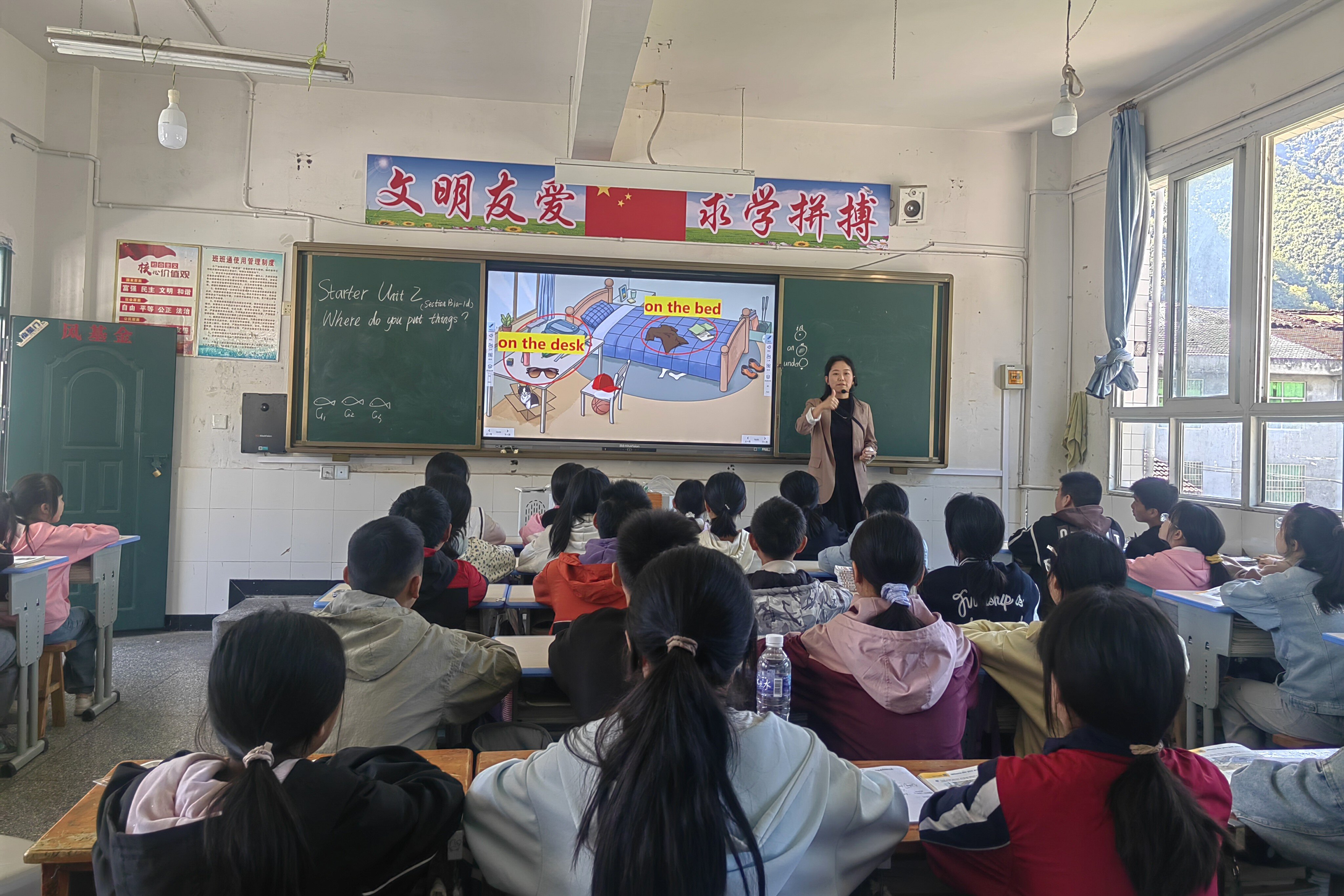 活动当日,达州中学杨柳校区王芝密老师为石塘学校师生带来精心准备的示范课。在英语“on、in、under”方位介词模块教学中,王老师采用活泼生动的视频教学和情景对话,让课堂充满欢声笑语,有效提升了学生的口语表达能力,还锻炼了学生独立思考和理论联系实际的能力。
