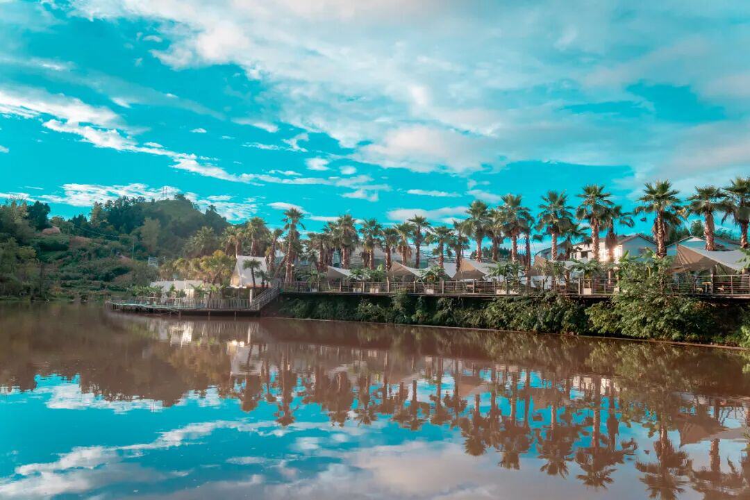 桥影河畔沙滩音乐会,完美结合沙滩+冷焰火打造出圈氛围,音乐会奏响爱国乐章,古风舞韵翩跹动人,科技光影打造沉浸式水岸剧场,让你在秋夜的河畔,邂逅一场诗意满满的夜游体验。