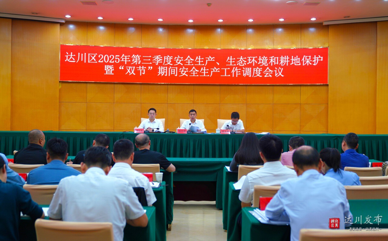 9月29日,达川区2025年第三季度安全生产、生态环境和耕地保护暨“双节”期间安全生产工作调度会召开。会议深入学习贯彻习近平新时代中国特色社会主义思想以及习近平总书记关于安全生产、生态环境和耕地保护工作的重要讲话和重要指示批示精神,落实国省市安全生产、生态环境和耕地保护有关部署要求,分析形势和问题,安排部署全区“双节”期间安全生产工作及下阶段重点工作。区委副书记、区长唐令彬主持会议并讲话。