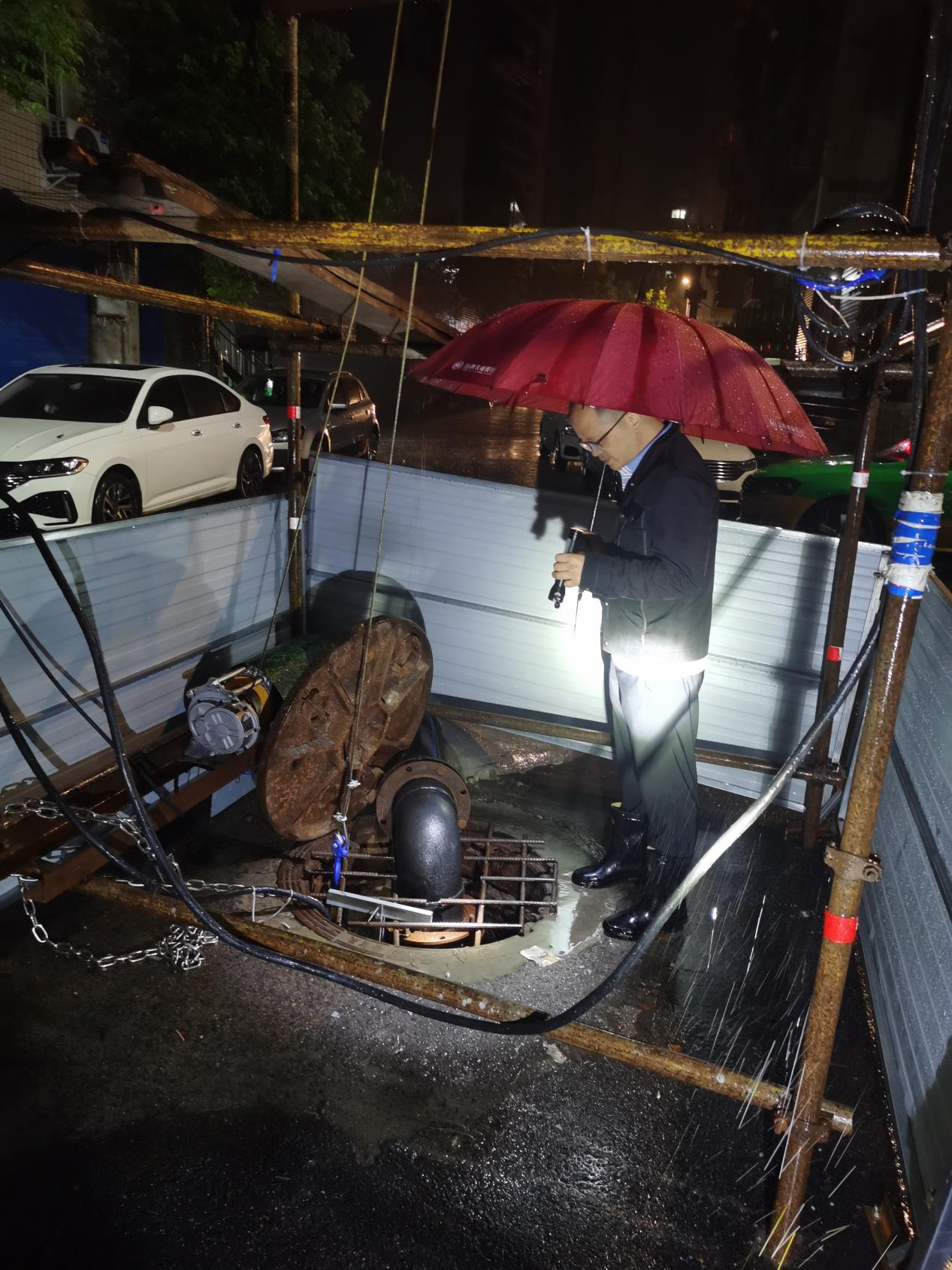 草街子社区协调专业人员到场拉开井盖、加速排水