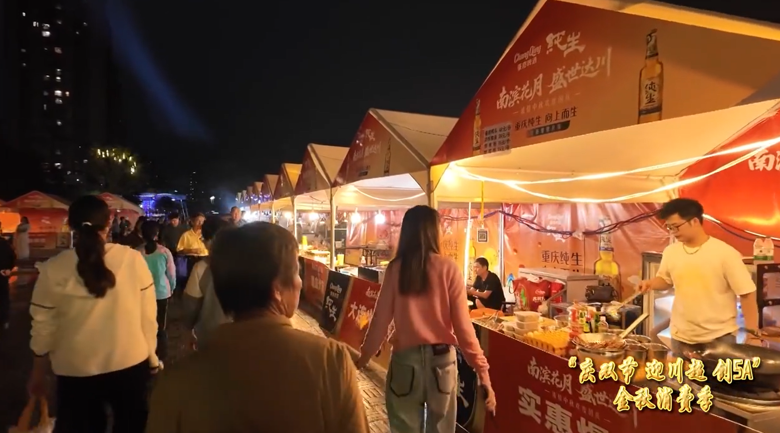 赛场之外环绕在巨幕周围的美食集市香气四溢,烧烤、冷串等达州特色小吃琳琅满目,搭配精选酒水饮料,让观看户外直播的市民完美实现了“舌尖美味”与“赛场激情”的共鸣。