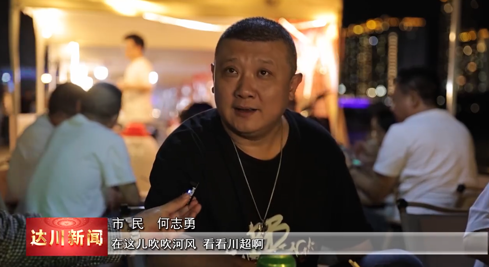 市民 何志勇:这个氛围很舒服,在这儿吹吹河风,看看川超,感觉很舒服,朋友一起喝喝酒、聊聊天,真的很舒服。