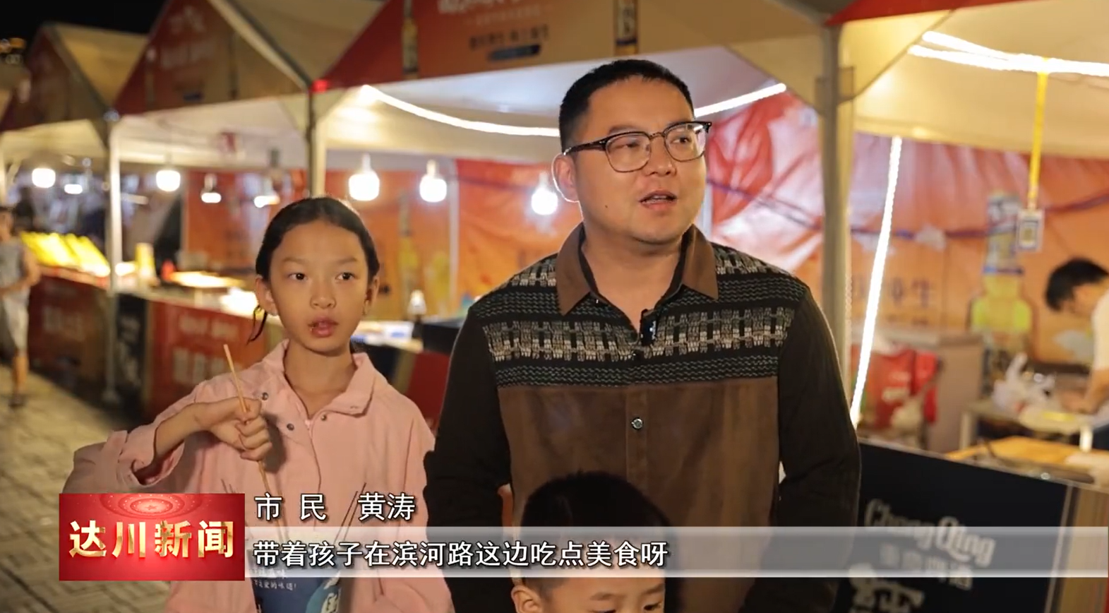 市民 黄涛:国庆期间放假,带着孩子在滨河路这边吃点美食,小孩子吃点烧烤这些,还能够看到我们喜欢的球赛,多开心的。