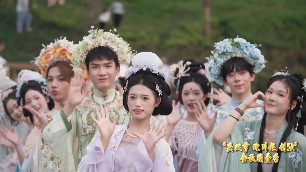 傍晚6时,汉服巡游率先启幕。广袖流仙的表演者沿州河步道前行,玉佩叮咚、团扇轻摇,宛如从古画中走出,市民纷纷驻足拍照。