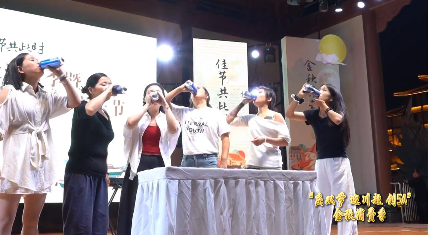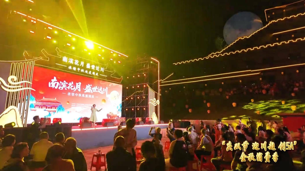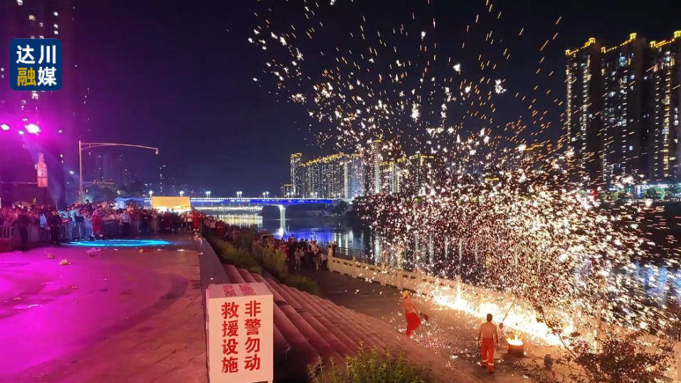 晚7时,全场合唱《我和我的祖国》歌声震河畔。随后灯光秀登场,光束与河波交映,勾勒“团圆达川”轮廓;战鼓舞《鼓震山河》铿锵有力,“月字飞花令”环节市民争相抢答经典诗句,满是文化韵味。