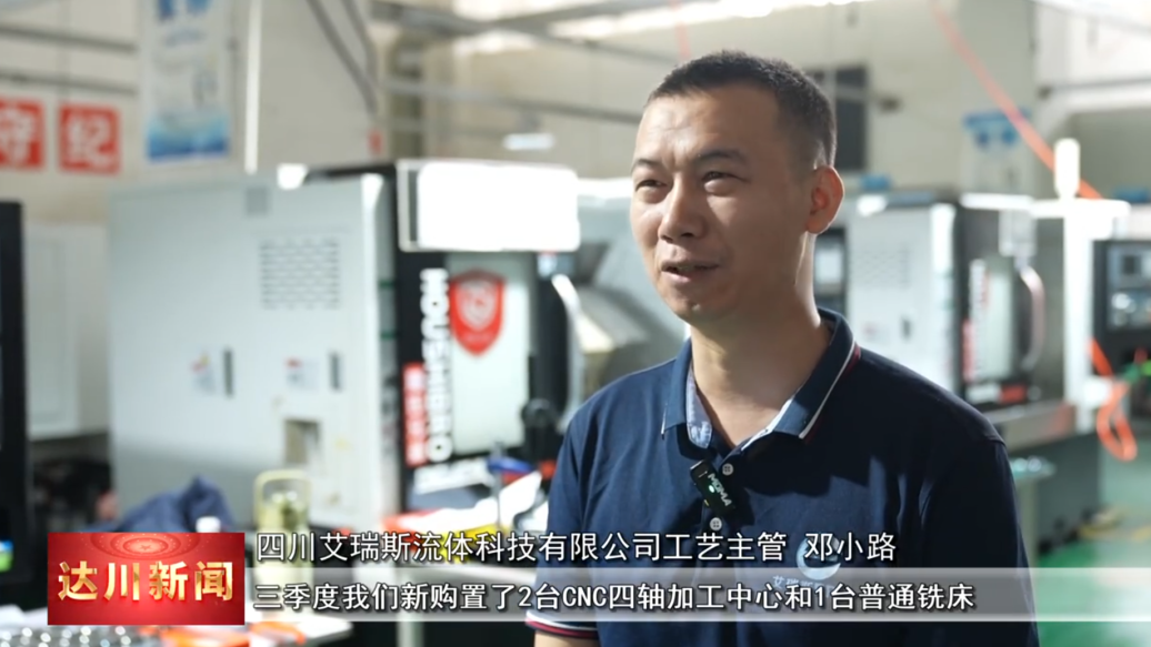 四川艾瑞斯流体科技有限公司工艺主管 邓小路:三季度我们新购置了2台CNC四轴加工中心和1台普通铣床,新设备的增加,让我们能自主生产夹具,生产的产品也更加丰富,产能也得到了更大的提升。