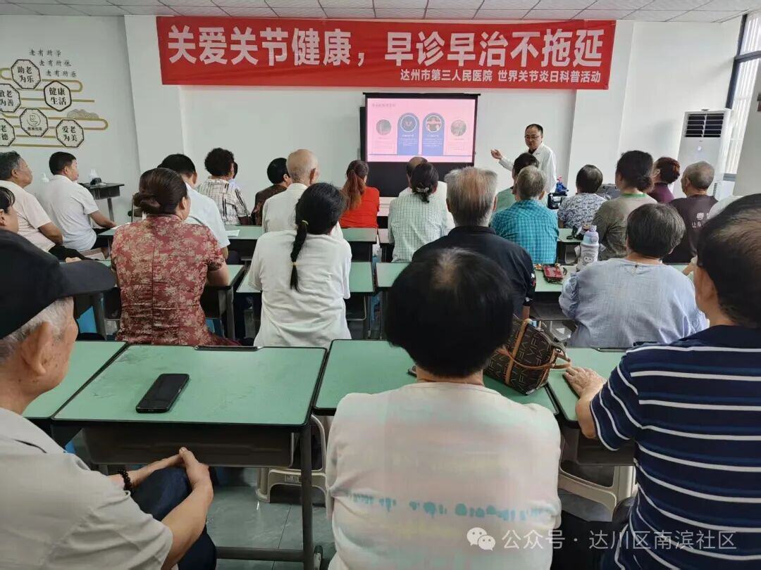 为迎接第29个“世界关节炎日”,提高社区居民尤其是老年人对骨性关节炎的认知与防护能力,10月11日上午,达州市第三人民医院骨科关节足踝病区在南滨社区老年活动室开展了“关爱关节健康,早诊早治不拖延”为主题的科普宣教活动。
