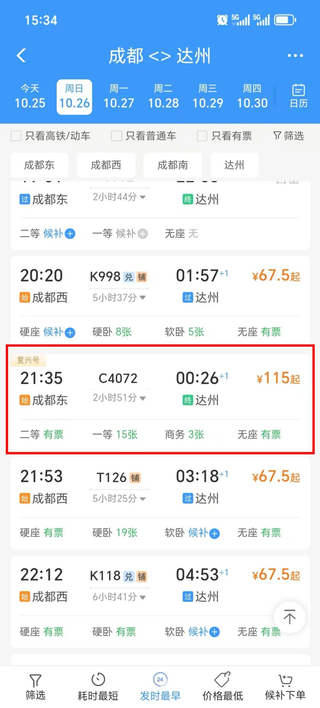 记者从达州市交通运输局获悉,为解决市民周末出行难题,经达州市与中国铁路成都局集团有限公司沟通对接,拟于本周日(26日)起,每周周日晚上增开C4072次一站直达动车,21时35分从成都东站出发,次日零时26分抵达达州站。 据介绍,达州与成都两地人员往来频繁,周日下午、晚上从成都开往达州的动车常常出现“一票难求”的情况,票源紧张。目前,周日晚上从成都开往达州的动车,最晚出发时间为19时51分,增开动车将有效缓解票源紧张情况,也将给旅客出行时间提供新的选择。 考虑到旅客乘坐C4072次列车抵达达州已是凌晨,为方便旅客快速、便捷回家,达州市将配套安排两路接驳公交车,线路一为火车站往南外方向终到南客站;线路二为火车站往北外方向终到肖公庙。旅客也可选乘出租车、网约车前往目的地。