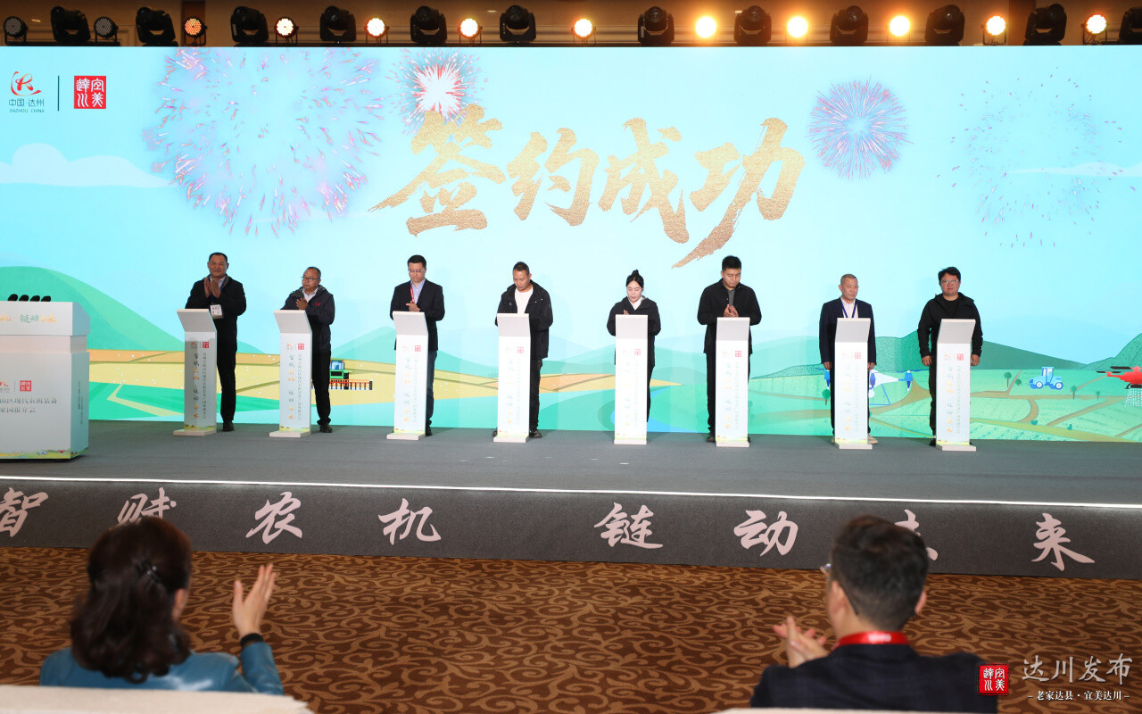 签约代表在电子屏上完成签名,标志着双方合作正式启动,将进一步推动达州农机产业向市场化、集群化方向迈进。