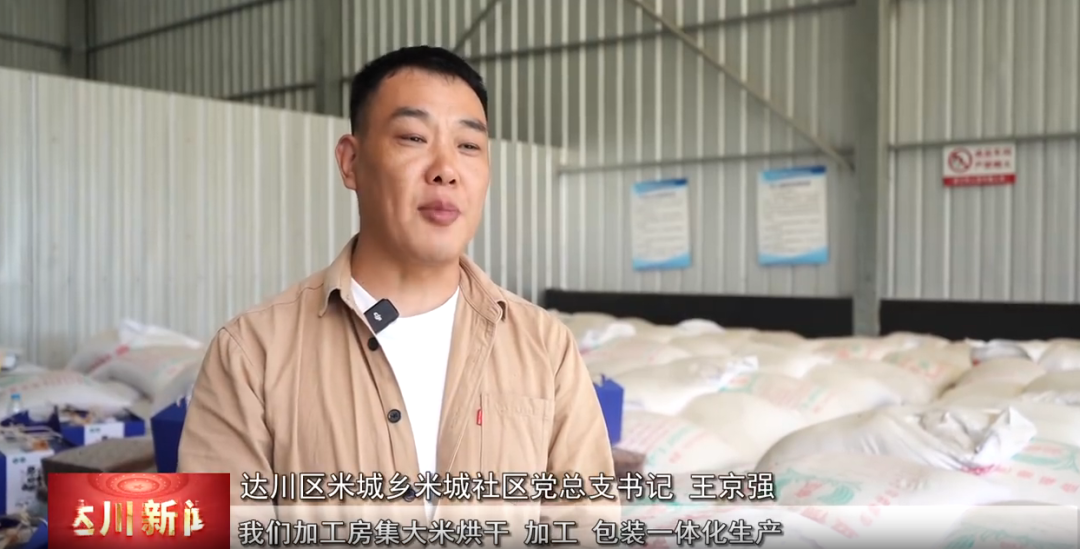 达川区米城乡米城社区党总支书记 王京强:我们加工房集大米烘干、加工、包装一体化生产,主要是负责本社区及周边村庄的稻谷加工。