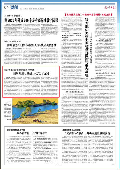“西电东送”是我国实施西部大开发战略,加快建设新型能源体系、促进东西部地区协同发展的重大举措。自1998年四川电网开启省外送电以来,27年间累计向华中、华东等地区外送的清洁电能,相当于替代燃煤约5.7亿吨,贡献减排约10.9亿吨二氧化碳,为全国能源绿色低碳转型和生态环境保护作出了重要贡献。