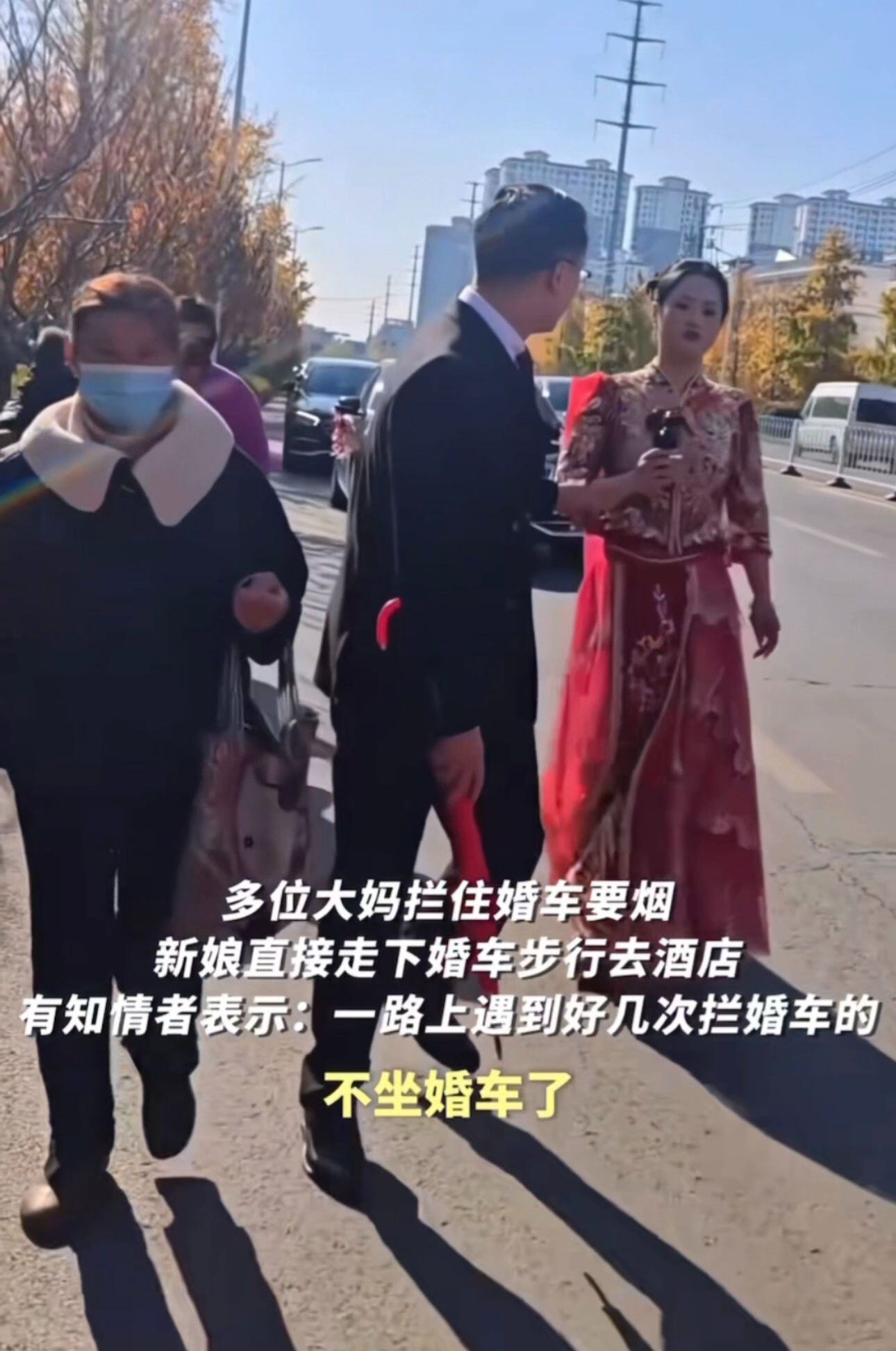 这都什么年代了,还有人强行拦婚车讨喜烟,不给不让走?江苏一对新人婚车好几次被拦下。新娘怒了:不惯着,直接走下婚车步行去酒店!