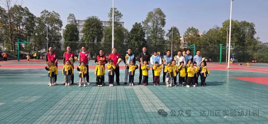 这边宝贝们还在互相展示奖牌,那边家长们的篮球赛已经开场——奔跑、传球、进球,场边的小“啦啦队”喊得比谁都响亮,亲子的快乐,在赛场边又翻了个倍。