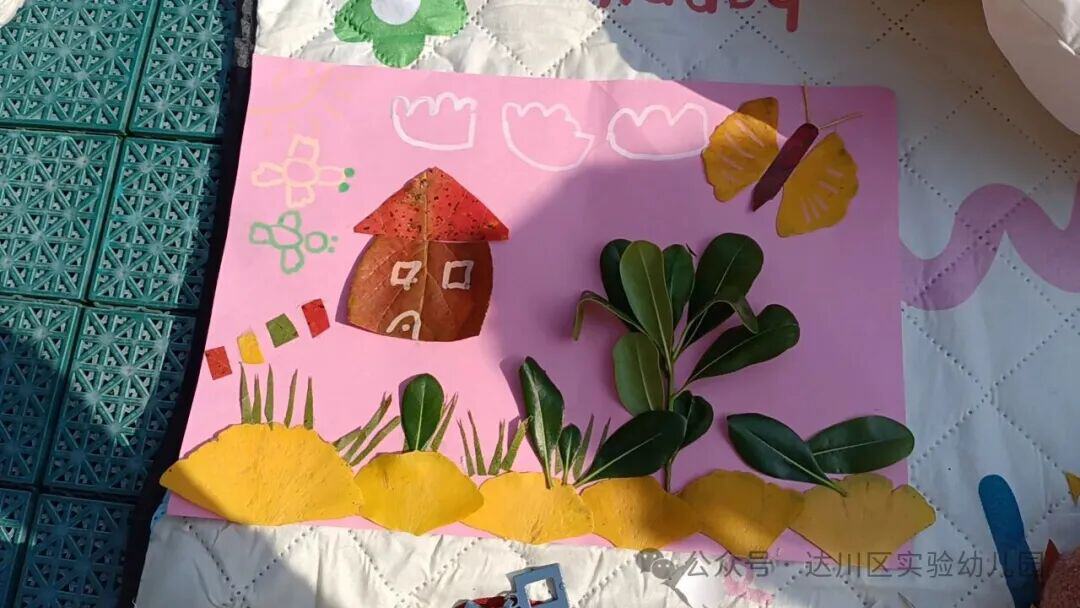 最后,宝贝们蹲在树下捡落叶:红的、黄的、卷边的、圆的……小手把树叶拼成小蝴蝶、小太阳,贴在纸上,也把这个初冬的温柔,永远留在了童年里。