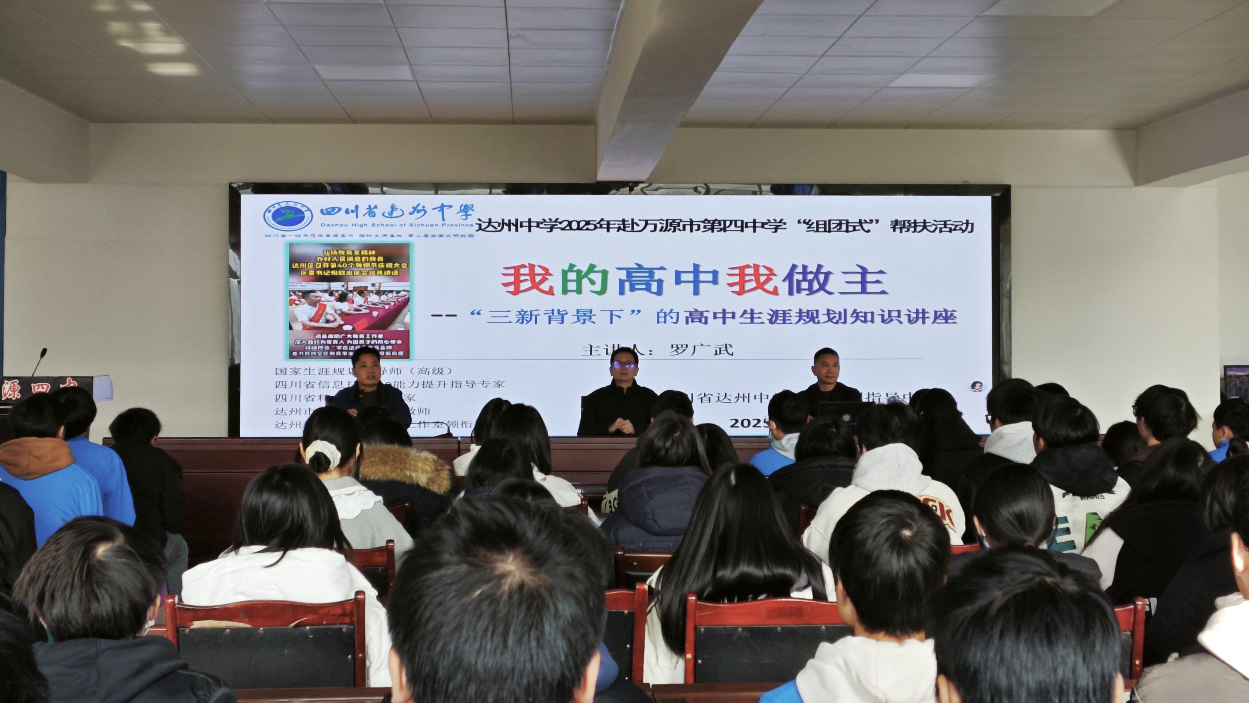 为深化“组团式”教育帮扶实效,11月27日,四川省达州中学前往万源市第四中学,对该校高2025级新生和班主任开展了主题为:“我的高中我做主——三新背景下的高中生涯规划”专题讲座。