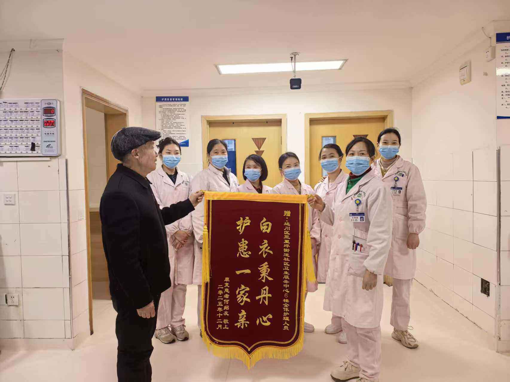 近日,一面承载着真挚谢意的锦旗被郑重送至我中心综合三科护理部。红彤彤的绒面上,“护患一家亲 白衣秉丹心”十个金黄大字熠熠生辉,赠旗者是刚刚痊愈出院的75岁患者何爷爷及其家人。他们紧紧握着护士长的手,激动地说:“这些天多亏了你们,不是亲人,胜似亲人!”