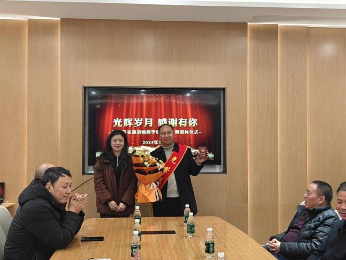 为深入贯彻习近平总书记关于老干部工作的重要指示精神,落实干部荣誉退休要求,增强干部退休的政治荣誉感和组织归属感,2025年12月22日,达川区交通运输局为光荣退休的三级高级主办李炜同志举行荣誉退休仪式。局机关全体干部职工、下属单位负责人齐聚一堂,共同见证这一温馨而庄重的时刻。