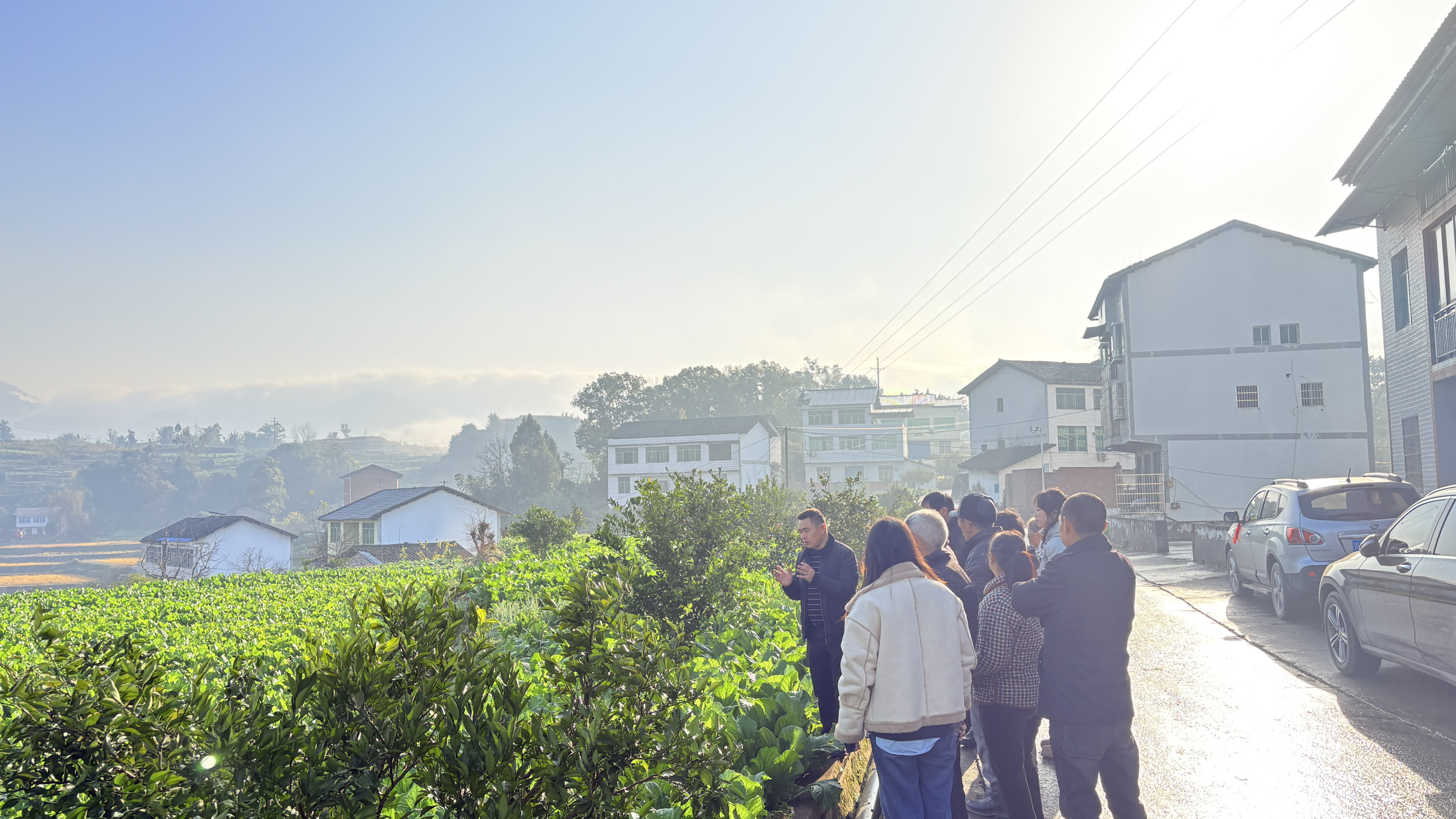 在榨菜种植基地,达川区通健家庭农场负责人紧紧围绕本地特色产业,系统讲解了榨菜从选种、育苗、移栽、田间肥水管理到采收的全周期技术要点。重点分析了榨菜常见病虫害的种类、发生规律,并演示了绿色防控的具体方法,提倡科学用药与生态管理相结合。深入讲解了白菜、油菜等轮作作物的种植技巧,帮助农户实现土地高效利用与多元增收。同时,他发挥其市场联络优势,当场与榨菜收购企业进行电话对接,初步建立了海棠村榨菜直供销售的渠道意向,有效缓解了农户对产品销路的后顾之忧,实现了“技术指导”与“市场衔接”同步推进。