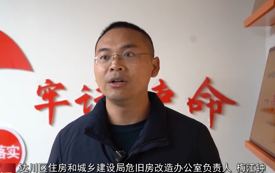 达川区住房和城乡建设局危旧房改造办公室负责人 梅江钟:通过这次我们局里面的“凝心聚力建四区•真抓实干创百强”大讨论活动。接下来,我们将锚定危房动态清零目标,以“好房子”标准扎实推进危旧房改造工作,全力推动“忧居”变“优居”,切实提升居民生活品质和城市形象,助力“宜美达川”建设。