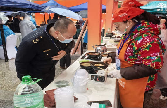 一碗米线藏乡愁,厨王争霸竞风流!2025年首届达县米线厨王争霸赛在达川区万达开生产性服务业基地广场热力开赛,传统与创意双赛道并行,选手们各展绝技,用地道风味与创新巧思演绎达县米线的独特魅力。为守护赛事期间食品安全,杨柳市场监督管理所主动靠前,派驻工作人员全程驻场监督,为这场美食盛宴筑牢安全防线。