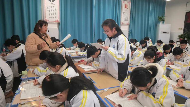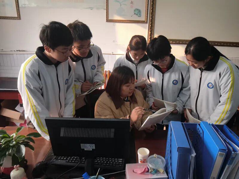 作为班主任,徐老师随时了解同学们各科学习的情况,并适时有针对性地做出相应的调整。进入初二后,徐老师发现部分学生的数学学习有些吃力,她于是通过找学生交流,把不同学生存在的问题进行梳理分类分组,并和数学老师商讨解决办法,然后自己去购买资料、网上查找资料,根据学习基础不同分发相应的自选练习,分组让学生每天自行“加料”强化;针对需要记忆的基础知识,比如英语单词、政史地生常识、数理化公式等,徐老师把全班按一人带二或三人分成一组,每天相互督促背诵,巩固基础知识。