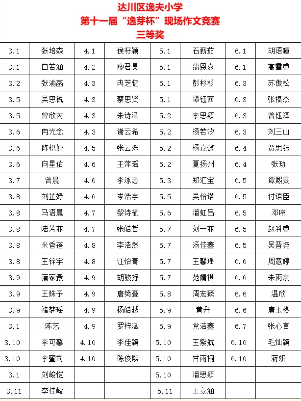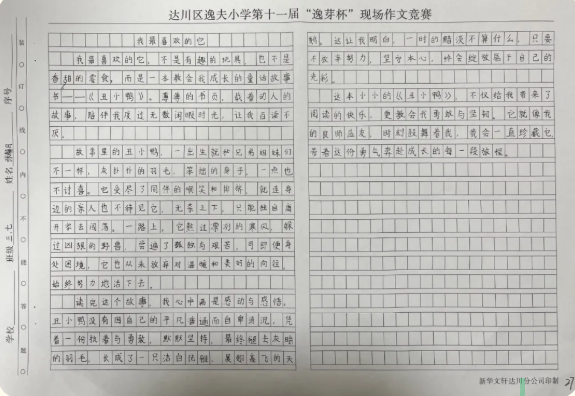 小寒连绵梅蕊放,笔耕伴雪入新章。激发文学兴趣,提升写作能力,打造书香校园。新年伊始,达川区逸夫小学联合新华文轩达川分公司,圆满举办第十一届“逸芽杯”现场作文竞赛。逸娃们文思泉涌,妙笔生花,绽放思维光芒,赓续中华文脉。