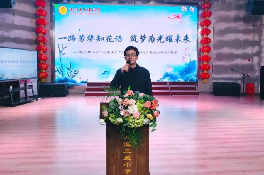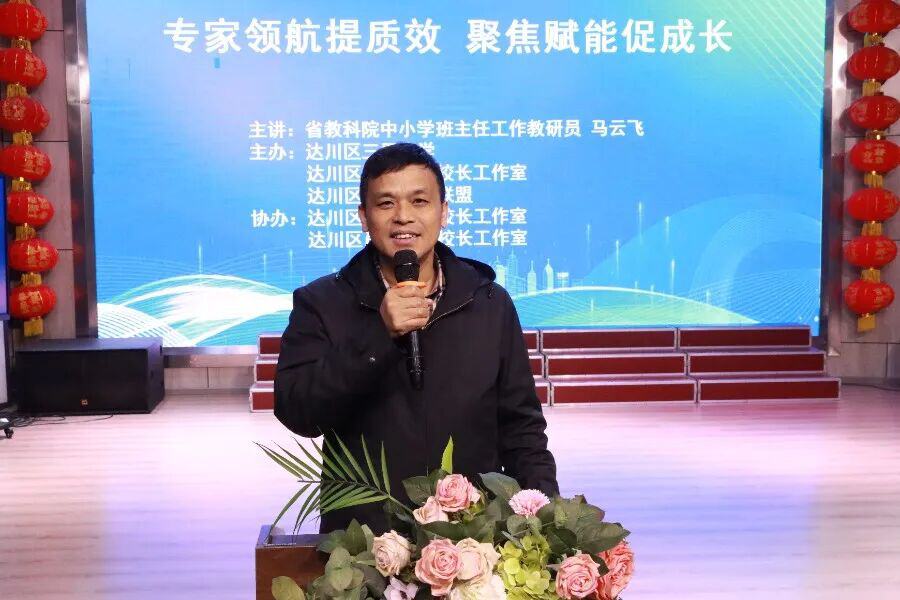 达川区三里小学党委书记为活动致辞。他首先代表全校师生向马博士致以热烈欢迎与诚挚谢意。德育是立校之基,班主任是德育工作的核心力量,新时代教育教学对班主任的专业素养与管理智慧提出了更高要求。他寄语全体教师,珍惜学习契机、潜心聆听感悟、做到学以致用,将所学所思所悟转化为育人工作的实际动力与有效方法;并希望以此次活动为纽带,深化校际交流协作,深耕三里教育沃土,立德树人初心,共绘达川区德育新图景。