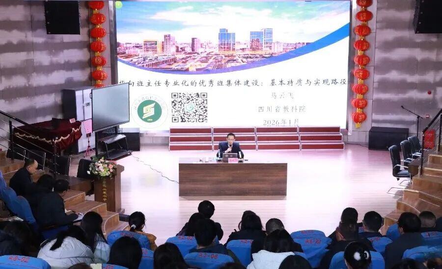 暖阳润桃李,德育启新程。为进一步聚焦德育工作要点,赋能班主任成长动力,激发班主任日常管理工作的主动性和创新性,提升老师们在新时期班级管理的专业素养和能力,近日,学校特邀四川省教科院中小学班主任工作教研员马云飞博士就班主任专业化成长、优秀班集体建设作专题讲座。