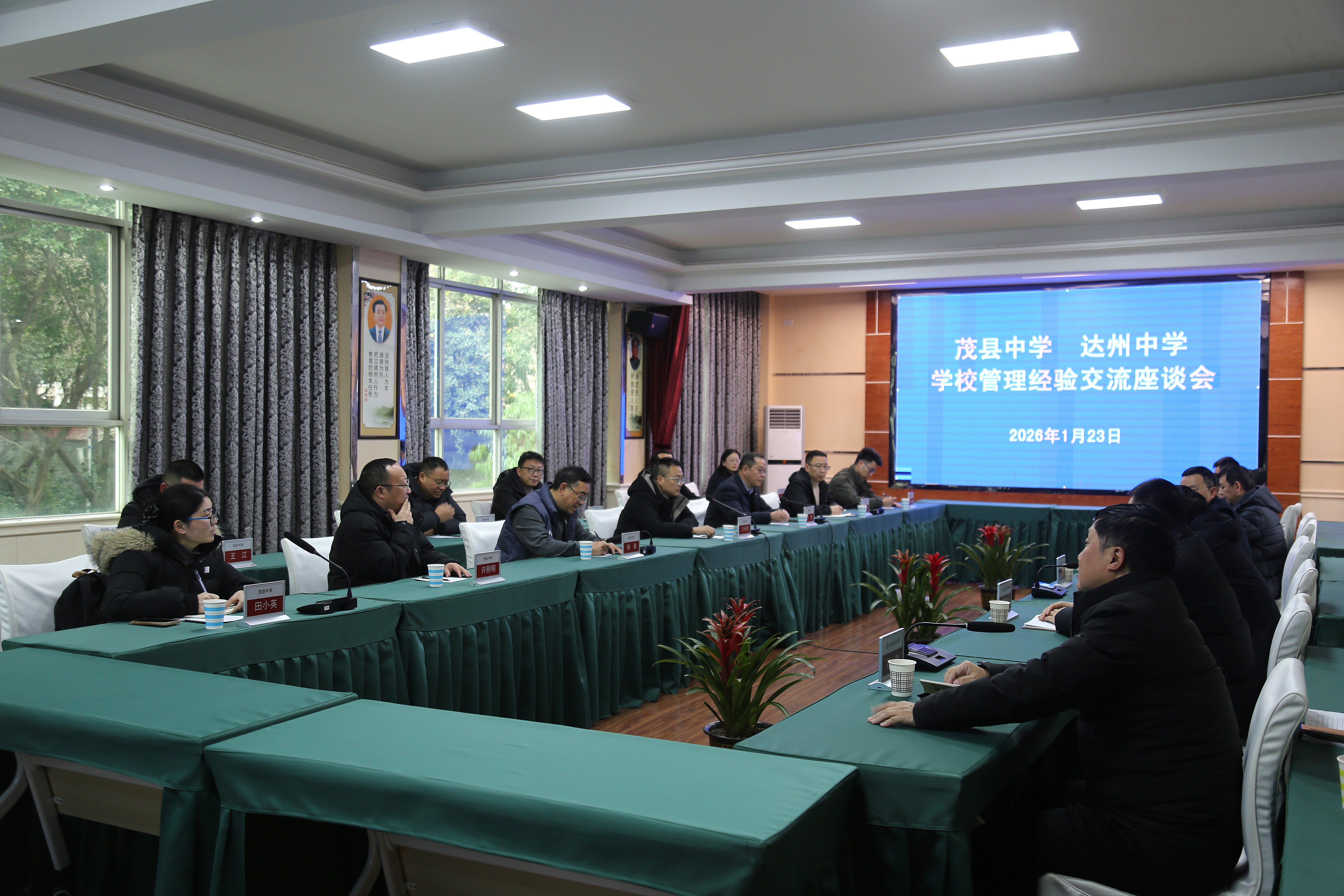 为深化校际合作,共享优质教育资源,1月23日,茂县中学党委书记万天德和校长梁勇一行莅临四川省达州中学,围绕学校管理、教育教学等核心话题开展考察交流。达州中学校长郭德波,副校长潘光东、王伟及相关年级和处室负责人热情接待并出席座谈会。