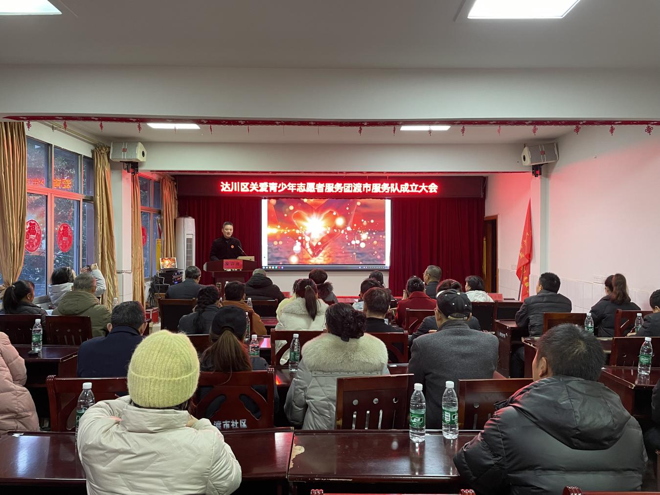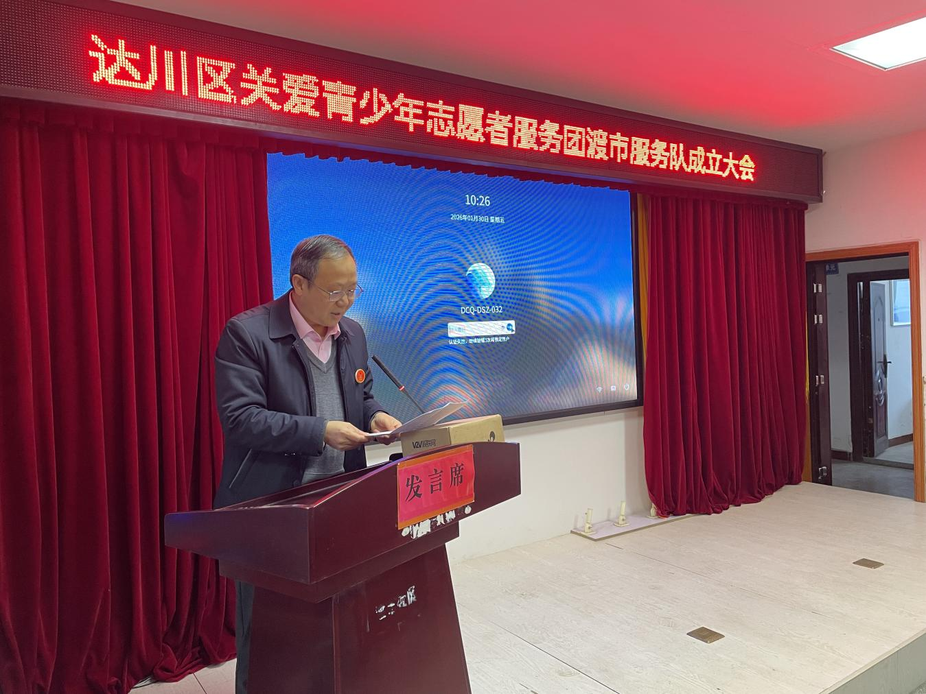 2026年1月30日上午,达川区关爱孤困儿童志愿服务团渡市服务队成立大会在渡市镇政府会议室隆重召开。此次大会旨在进一步健全完善基层关爱服务体系,壮大志愿服务力量,汇聚社会爱心资源。达川区关工委、渡市镇党委政府相关领导,市区志愿服务团理事会成员,以及来自渡市、罐子、龙会等地的志愿者和爱心人士共计60余人参加大会。
