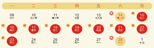 至2月23日(正月初七)共9天