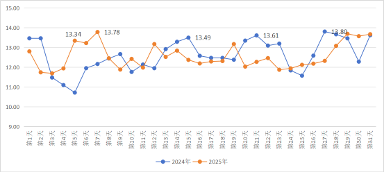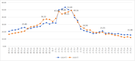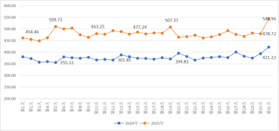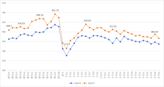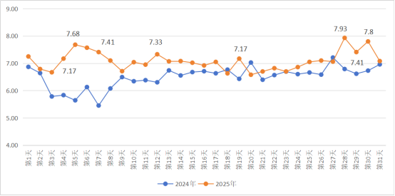 图1 2024年与2025年春运高速出入口流量(单位:万辆次)