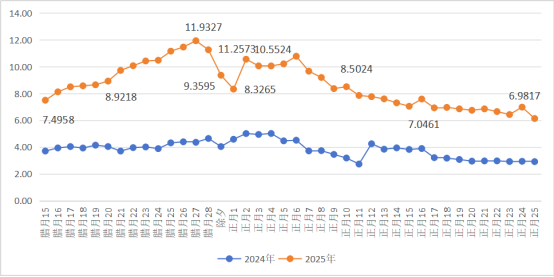 图5 2024年与2025年春运期间主城区交通流量(单位:万辆次)
