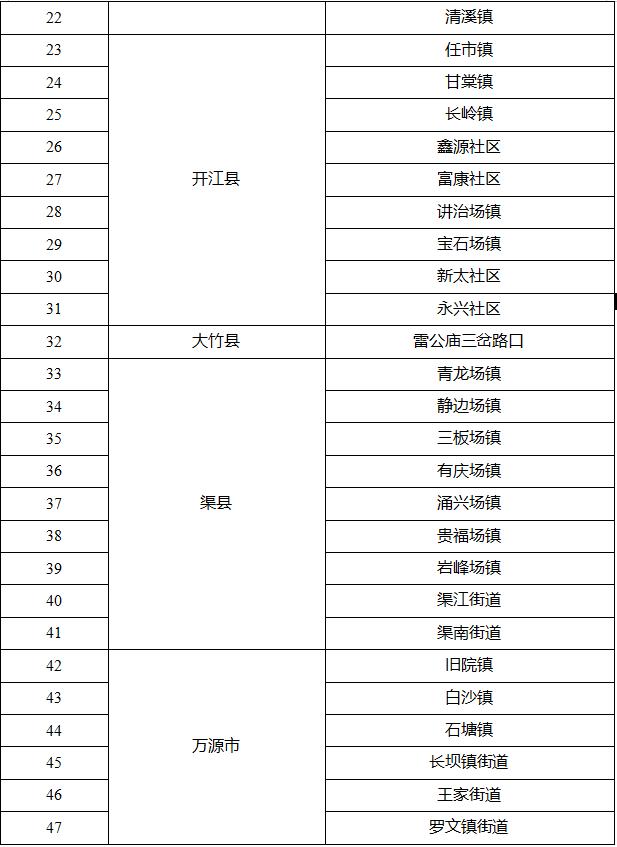 8、管村场镇、九岭社区场镇、金窝社区场镇、大堰场镇、罐子场镇;建议错峰出行。