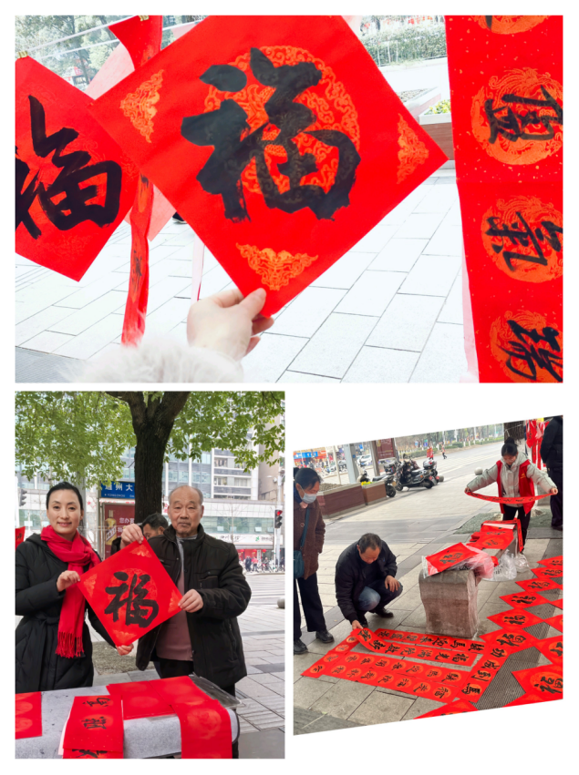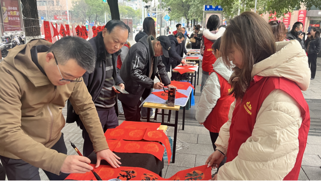 2026年2月3日上午9:30,新南社区携手民革达川区总支部诗书画苑,在财保广场开展“迎春送福”主题活动,以笔墨传情送新春祝福,同步联动社区卫生服务站提供免费基础体检服务,让居民在浓浓年味中收获健康与温暖。