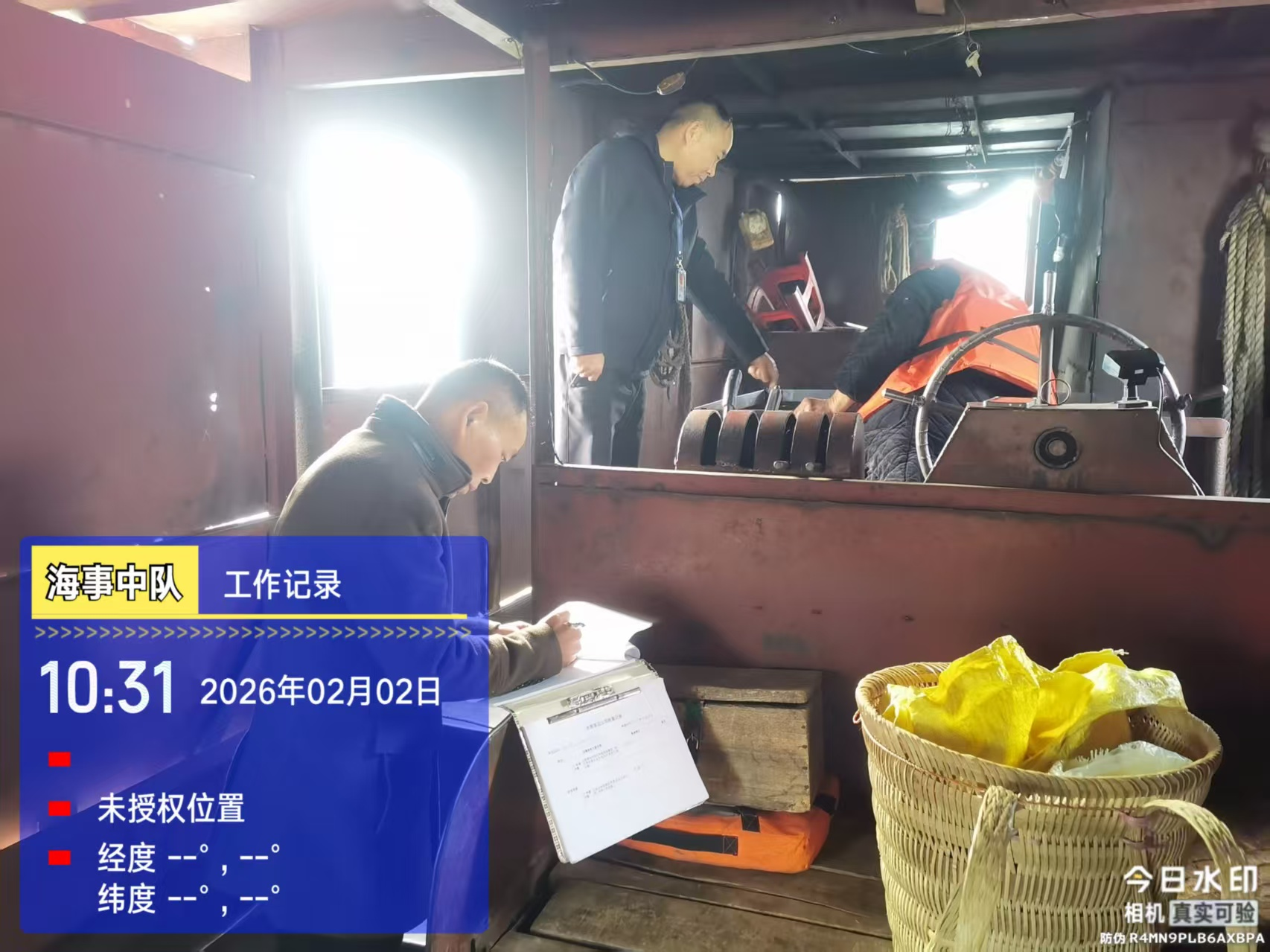 (交通执法大队在桥湾码头对船舶开展消防设施检查)