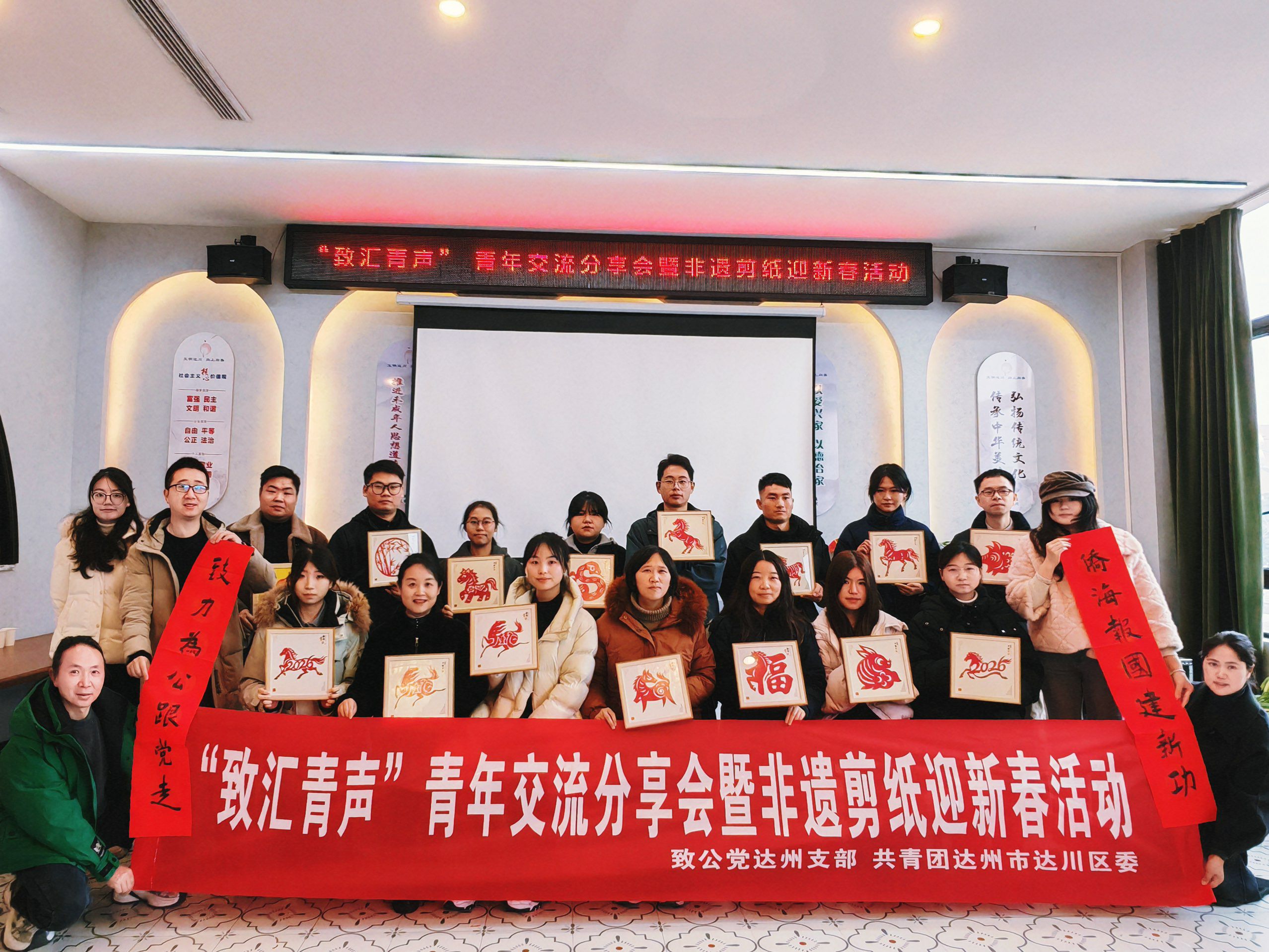 2月4日,团达川区委联合致公党达州支部在达川青年书屋成功举办“致汇青声”青年交流分享会暨非遗剪纸迎新春活动,来自全区不同行业的25名青年参与本次活动。