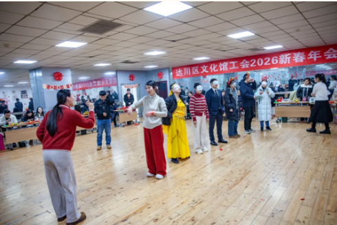 立春时节,万象更新。近日,达川区文化馆工会成功举办了2026年度迎新春工会联欢活动。本次活动以“团结、奋进、欢乐、祥和”为主题,通过丰富多彩的文艺演出与生动有趣的互动环节,集中呈现了全馆职工团结进取、昂扬向上的精神风貌,进一步增强了团队向心力与凝聚力,也为迎接新春营造出浓厚热烈的节日氛围。
