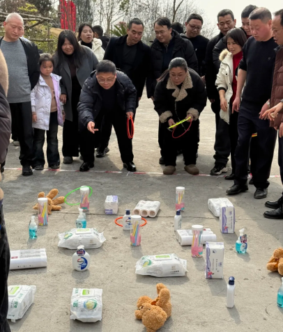 活动现场摆放着琳琅满目的小礼品,干部职工们排起队伍跃跃欲试。大家站在规定线外,手持彩圈,凝神瞄准,果断投掷,现场欢呼声、惋惜声、欢笑声此起彼伏,瞬间点燃了活动热情。