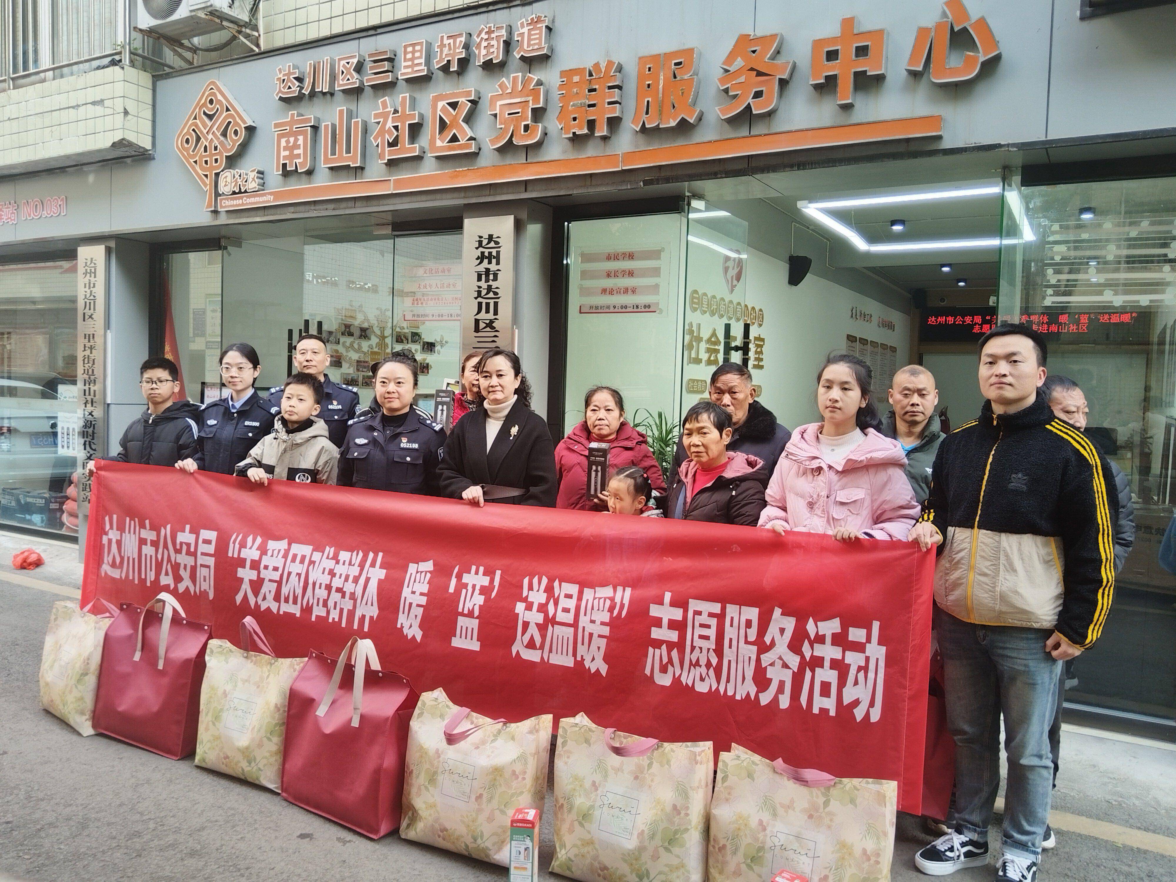在新春佳节来临之际,达川区三里坪街道南山社区新时代文明实践站联合达州市公安局开展“关爱困难群体暖‘蓝’送温暖”走访慰问活动,为辖区内的困难群众送去新春的祝福,以实际行动传递社区温暖与关怀。