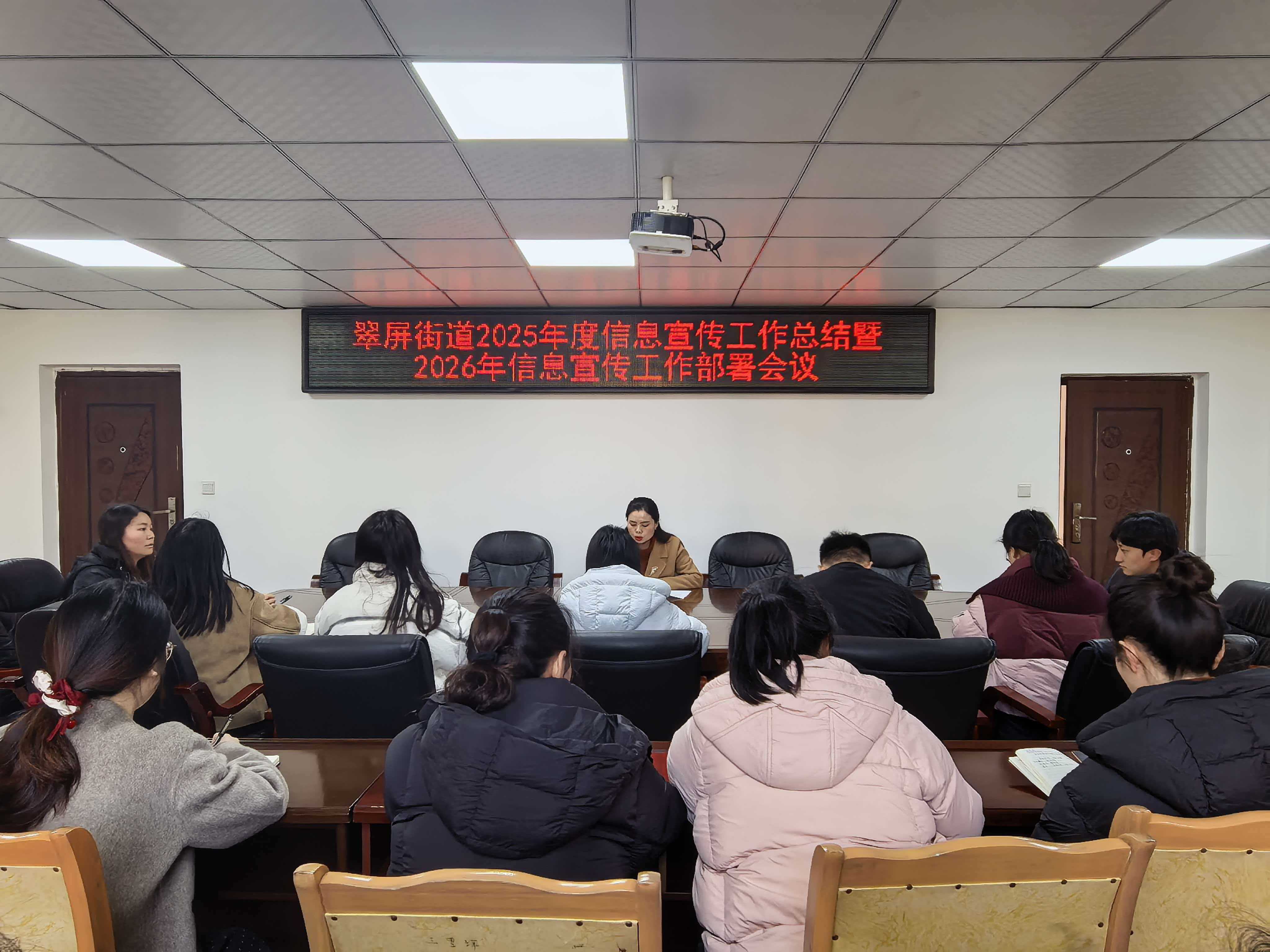 为全面总结2025年度信息宣传工作成效,精准查摆短板不足,系统谋划2026年工作思路举措,2月12日,翠屏街道召开2025年度信息宣传工作总结暨2026年工作部署会。会议紧扣基层宣传工作实际,明确方向、找准问题、制定任务、压实责任,为新一年宣传工作的提质增效制定了详细的路线图。机关年轻干部、社区宣传委员参加会议。