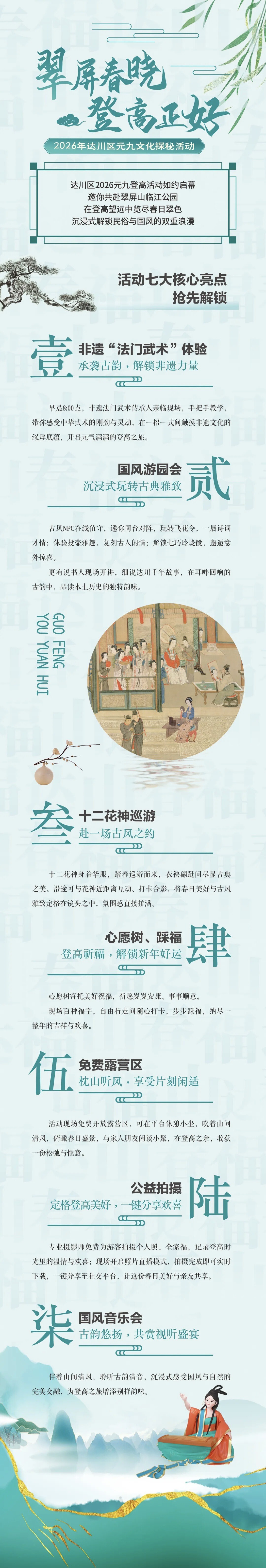 法门武术、国风游园、露营……七大亮点抢先看,邀您元九登高共览翠屏春色~ 文旅达川 2026-02-24 15:44 85 打开微信“扫一扫”,打开网页后点击屏幕右上角分享按钮 评论 0 还没有添加任何评论,快去APP中抢沙发吧! 我要评论