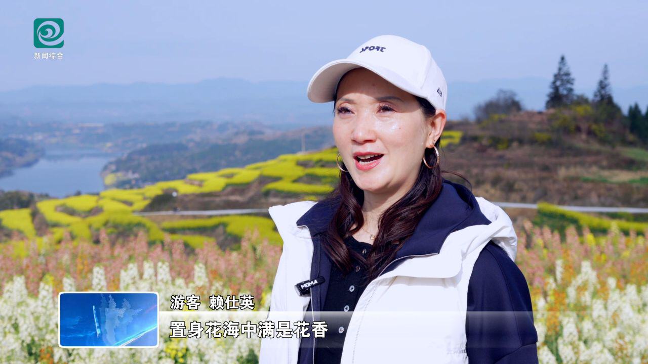 游客 赖仕英:这里的梯田油菜花真的非常漂亮,置身花海中满是花香,感觉整个人都闯进了春天的调色盘里,特别舒服。